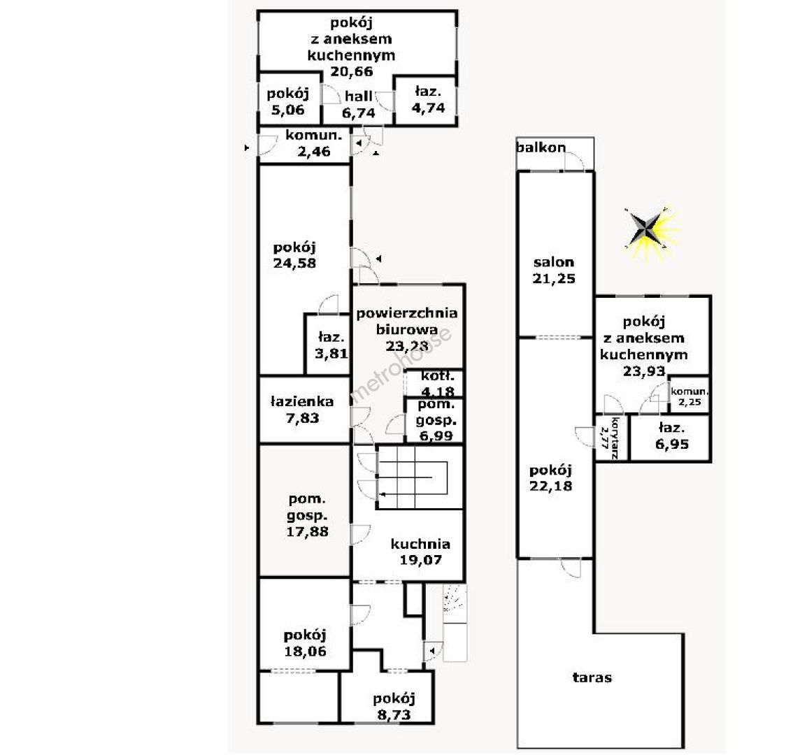 W centrum Ustki mieszkanie dla rodziny lub inwestora. Prezentowane mieszkanie ma dwa poziomy.Powierzchnia całkowita wynosi 253,53 m2. Pierwsza kondygnacja to 173,67 m2, druga 79,33 m2. Część parteru to 2 samodzielne apartamenty i 3 pokoje dla których jest wspólna łazienka i otwarta kuchnia (w sezonie można wynajmować). Na II kondygnacji znajduje się salon, jadalnia z aneksem kuchennym, sypialnia i łazienka. Taras od strony południowej...