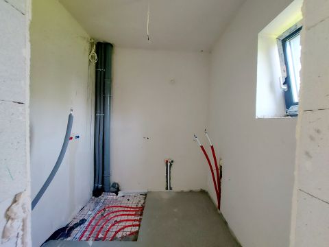 Dom o powierzchni 260m2 w Opypach. Na parterze przestronny salon z dużym oknem na ogród, otwarta, duża kuchnia z miejscem na jadalnie, spiżarnia, łazienka oraz dodatkowy pokój z łazienką i z wyjściem na ogród. Na pietrze cztery sypialnie, jedna z osobną łazienką, garderobą oraz sauną