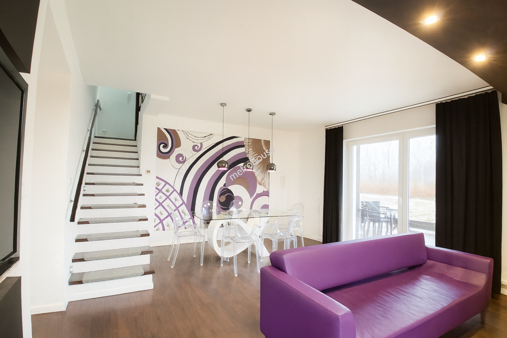Jasny, przestronny salon z oknami wychodzącymi na ogród, a usytuowana obok kuchnia została zaprojektowana tak, aby gotowanie stało się przyjemnością wygodny układ, dużo blatu i szafek do przechowywania, naturalne światło tworzą idealną przestrzeń dla osób ceniących praktyczne rozwiązania.