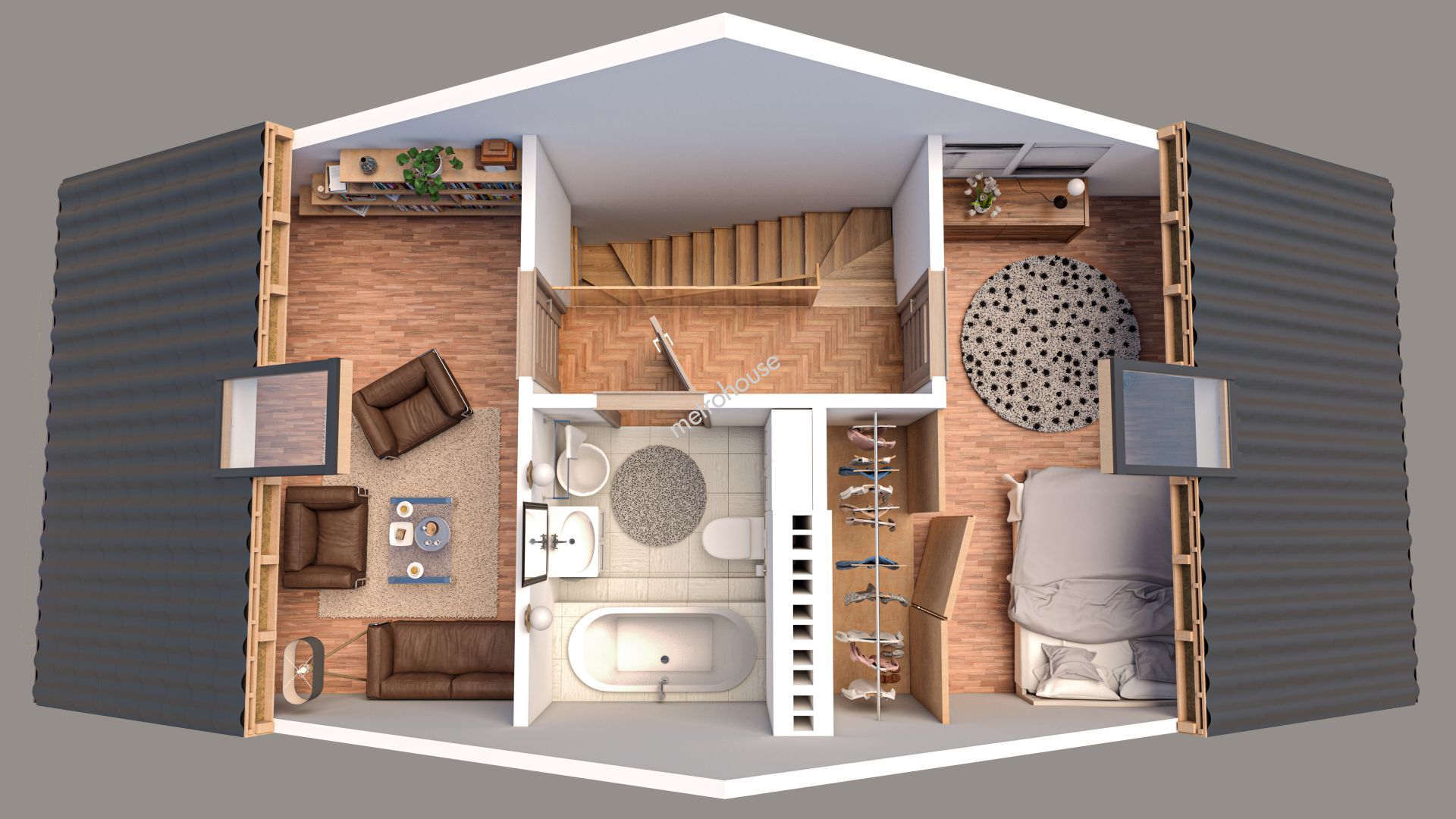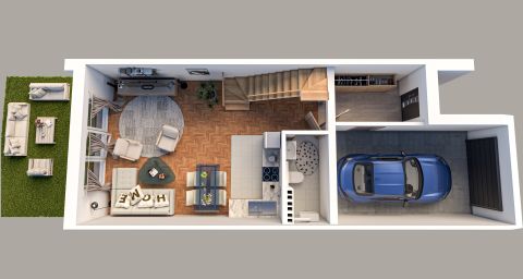 Dom składa się z trzech kondygnacji: parteru, piętra oraz poddasza użytkowego, o...