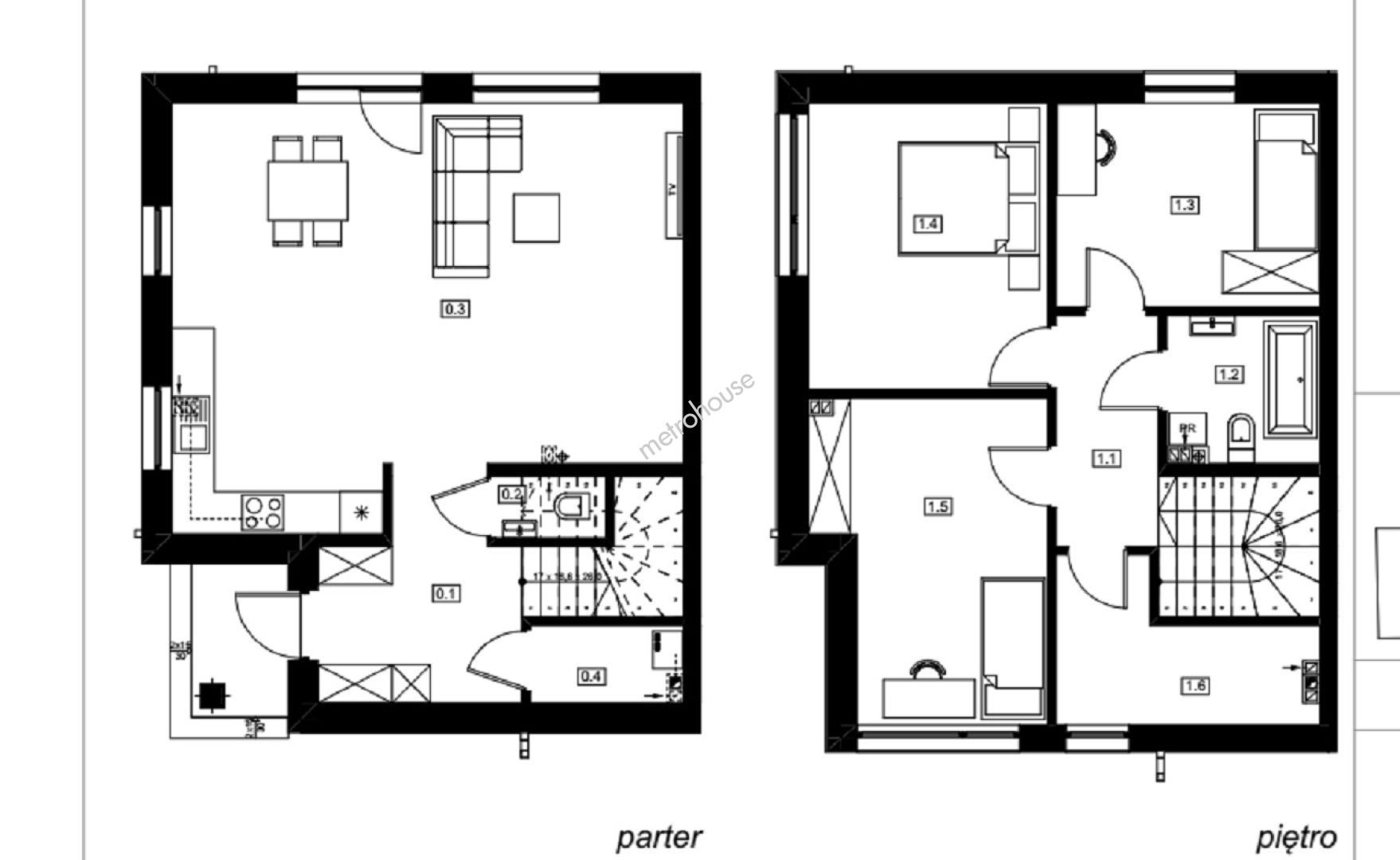 Bliźniak z ogródkiem. Na parterze znajduje się salon z aneksem kuchennym o powierzchni 40m2, wiatrołap, toaleta oraz pomieszczenie gospodarcze. Na piętrze są trzy sypialnie (11m2, 14m2, 13m2) , łazienka oraz pomieszczenie gospodarcze idealne na pralnie lub garderobę.