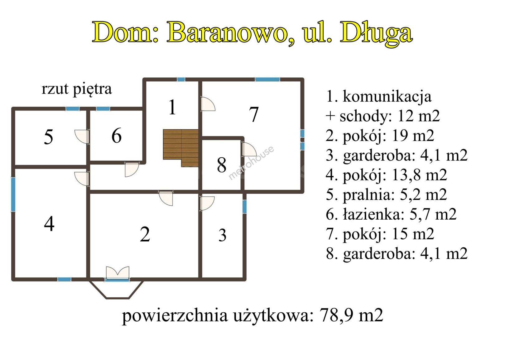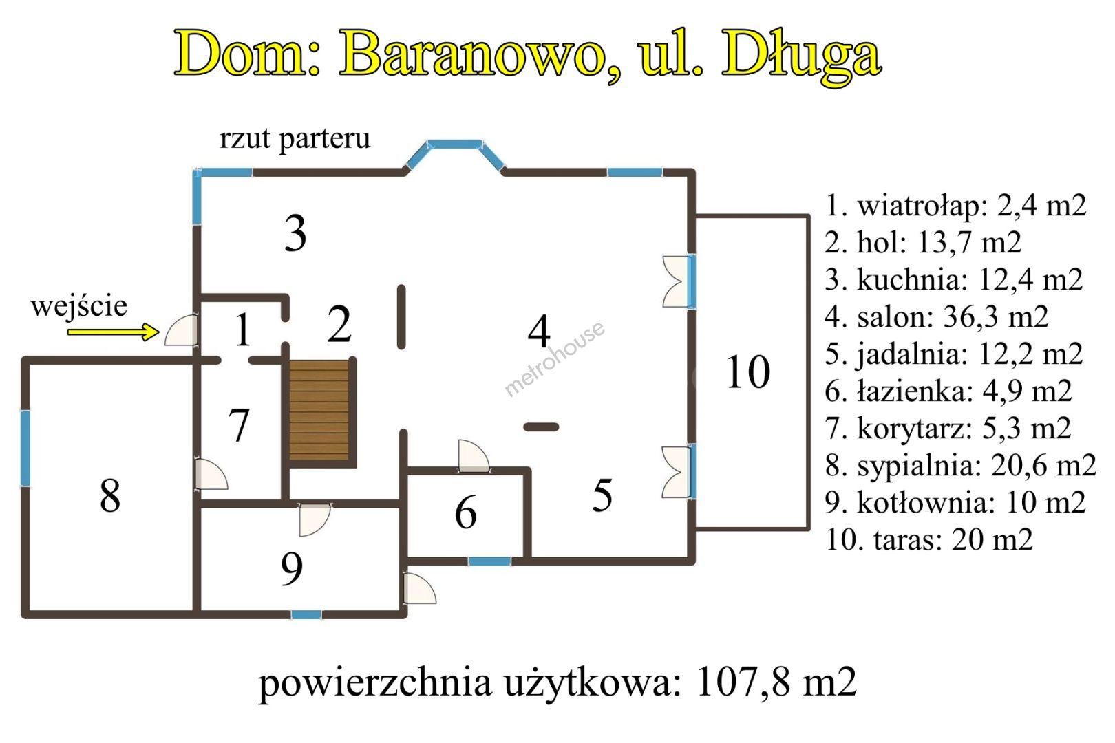 Na sprzedaż oferuję przestronny i nowoczesny dom jednorodzinny o powierzchni użytkowej 186,7 m², położony w centrum miejscowości Baranowo, przy ulicy Długiej. Nieruchomość znajduje się w doskonałej lokalizacji w najbliższym otoczeniu dostępne są wszystkie niezbędne udogodnienia, takie jak sklepy, bank, urzędy, szkoła i przedszkole, co czyni to miejsce idealnym do komfortowego życia.