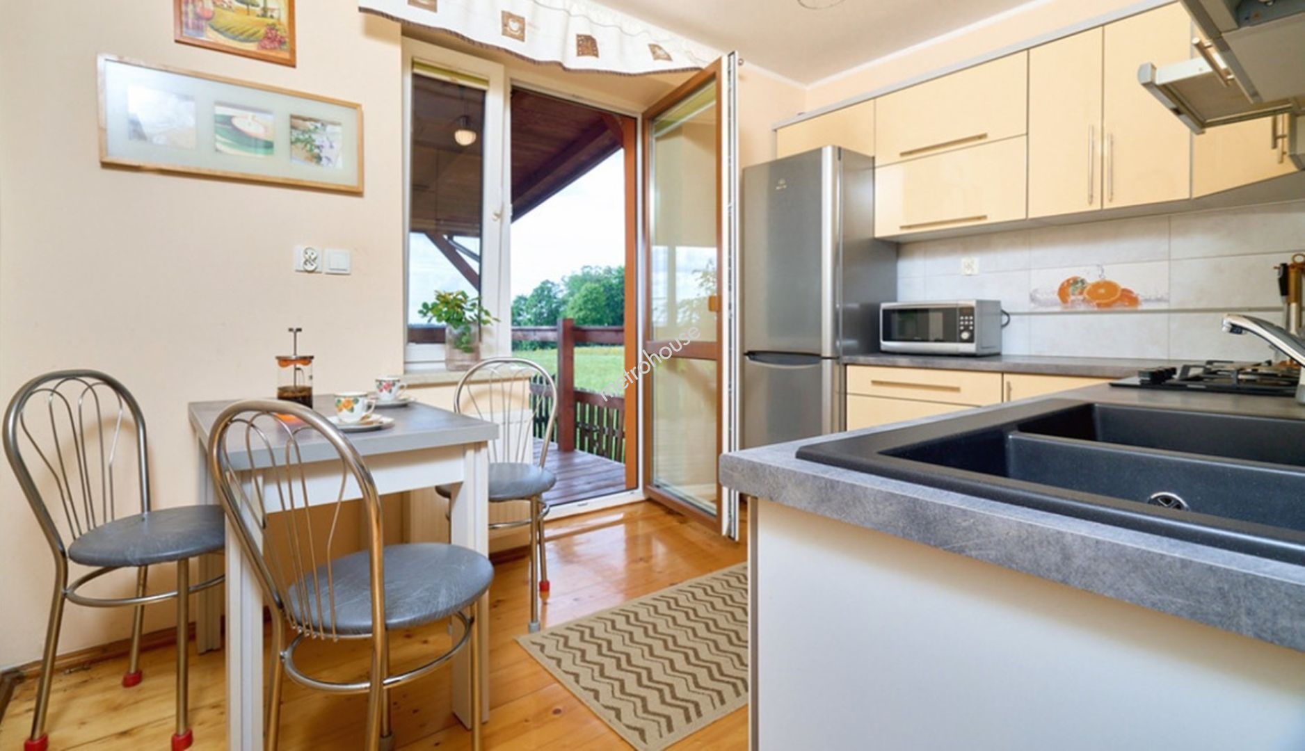 Na terenie budynki gospodarcze przerobione na garaż o 3 stanowiskach i warsztat. Teren ogrodzony z dużą bramą wjazdową, a na nim altana, wędzarnia, murowany grill, huśtawka.