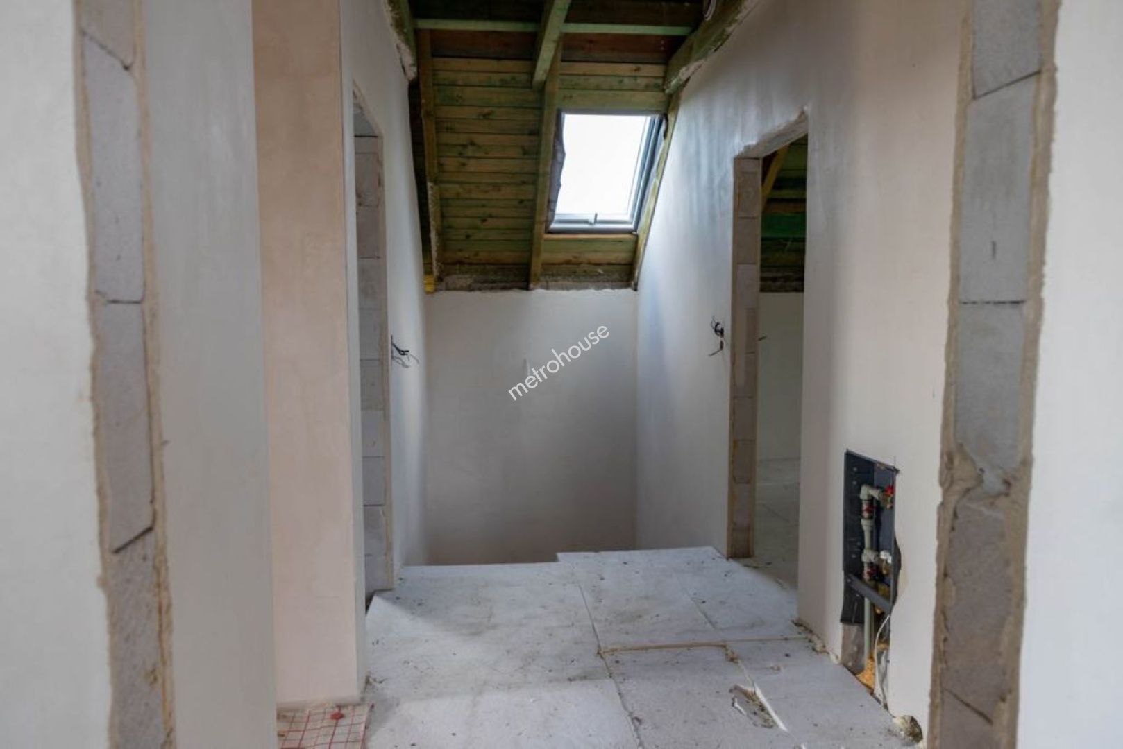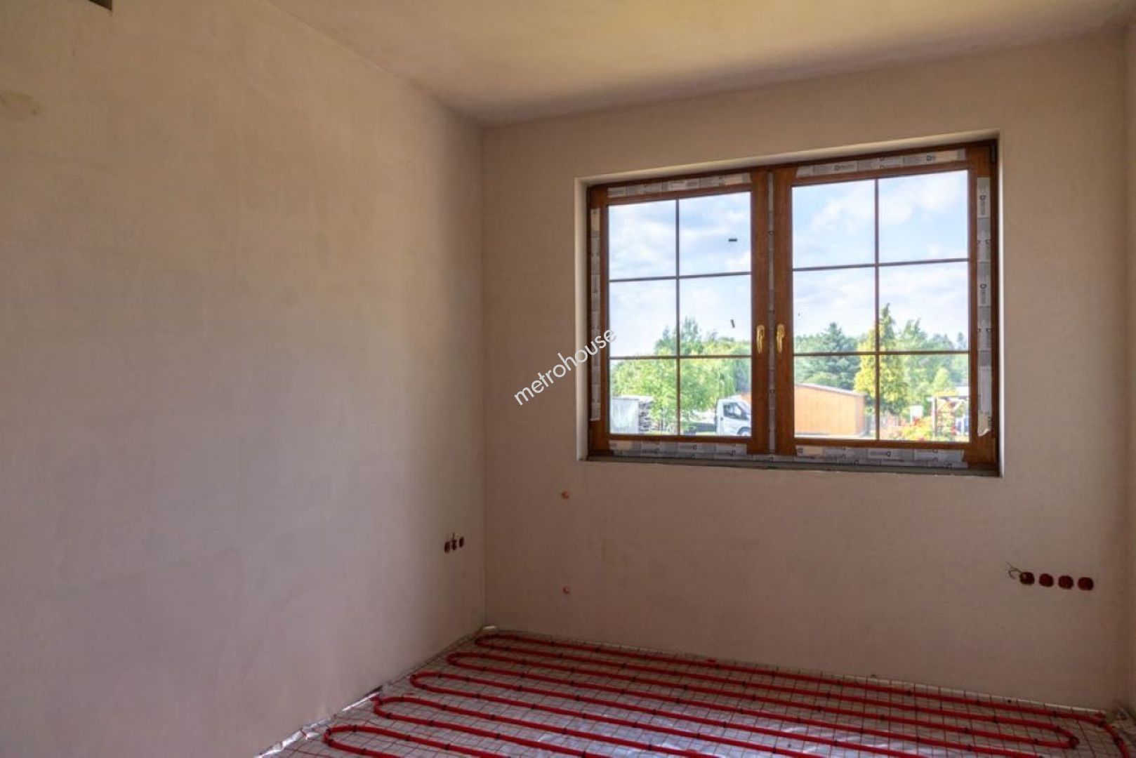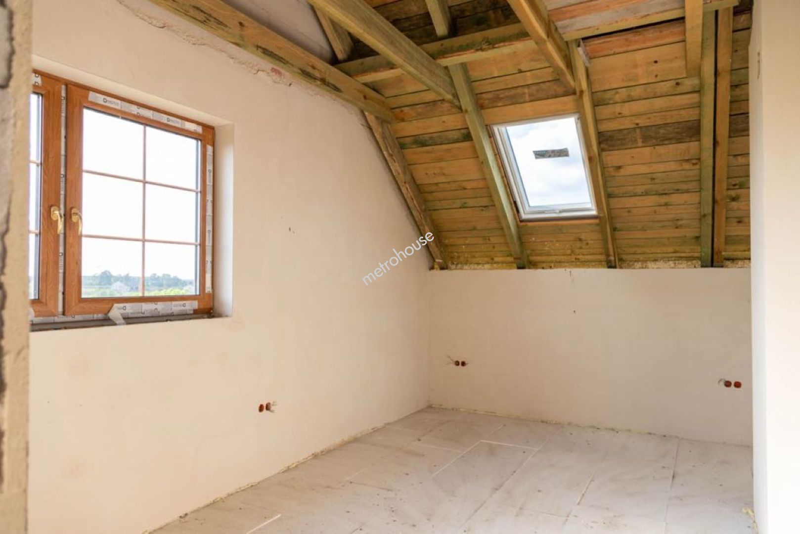 Na sprzedaż przestronny dom jednorodzinny o powierzchni 173 m², w stanie surowym z postępem prac instalacyjnych. Na parterze znajduje się salon z jadalnią, kuchnia, ,spiżarnia, pokój, łazienka, garderoba, garaż, kotłownia, wiatrołap i korytarz. Na piętrze trzy sypialnie, korytarz, łazienka i strych.