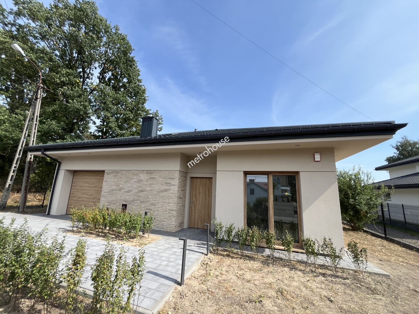 Dom składa się z: - przestronny salon z wyjściem na taras - aneks kuchenny - 3 sypialnie - 2 łazienki - spiżarnia z możliwością adaptacji na garderobę - garaż w bryle...