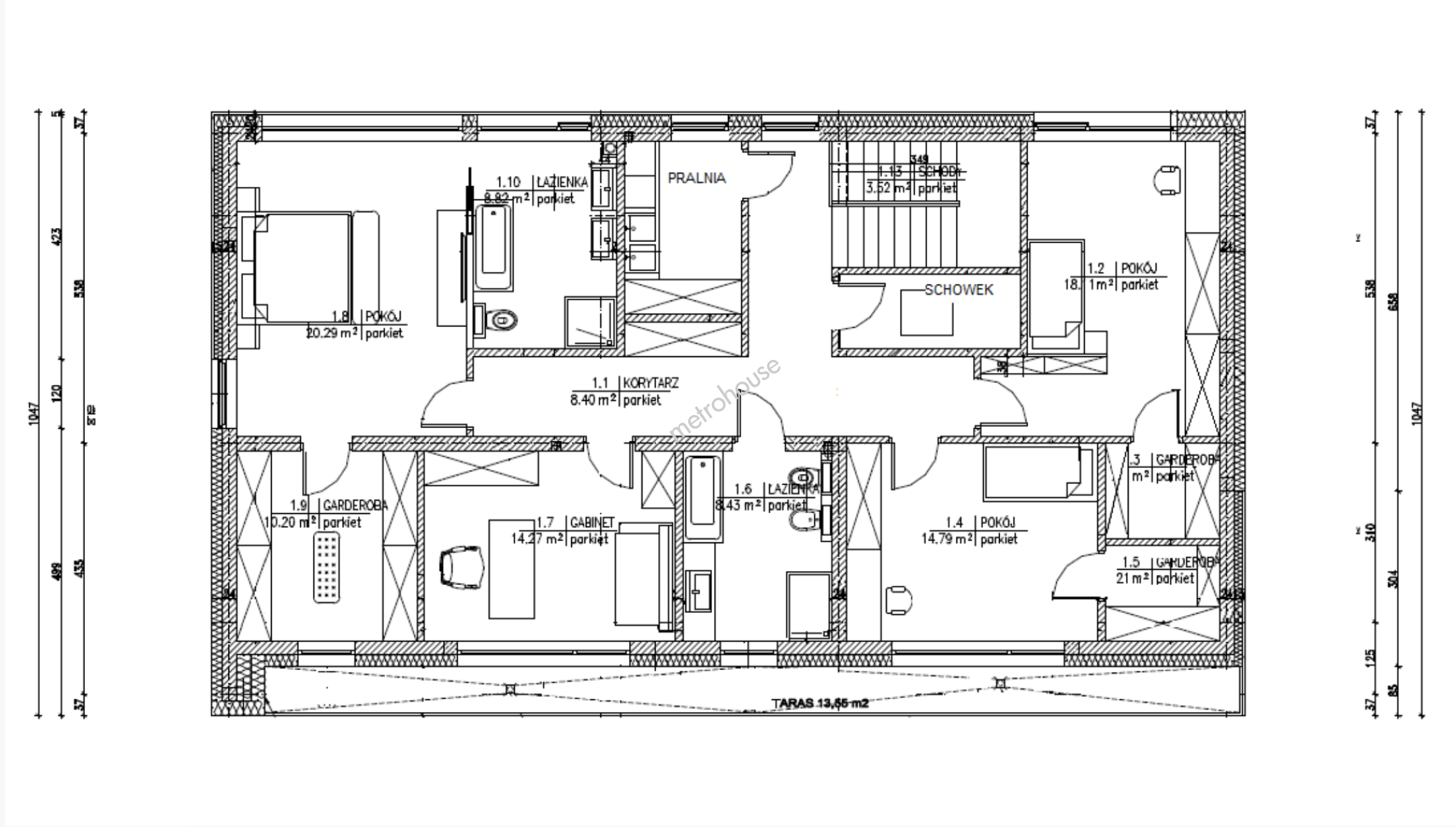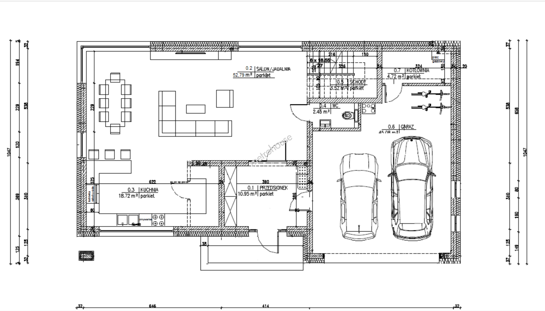 Powierzchnia: Użytkowa 221 m², całkowita 270 m².