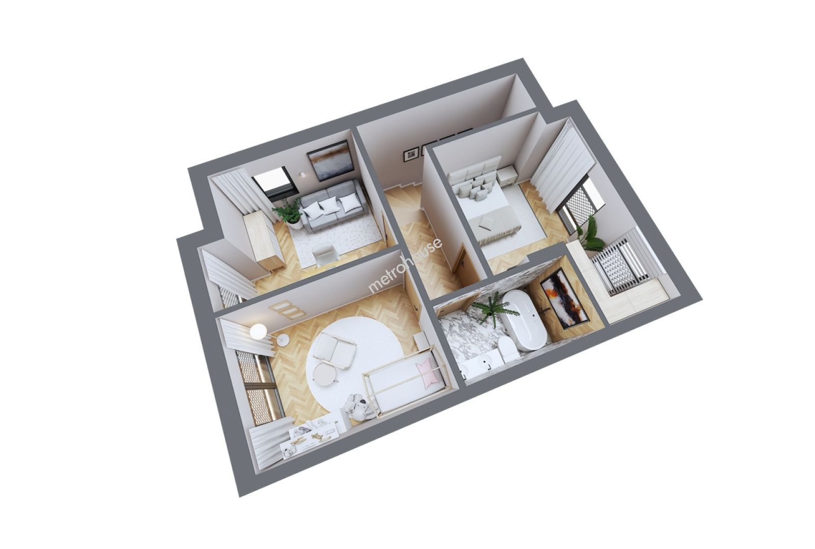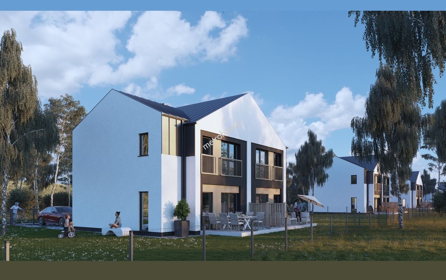 Na sprzedaż dziesięć nowoczesnych domów w zabudowie bliźniaczej o powierzchni 93,97 m² każdy, zlokalizowanych w spokojnej i zielonej części Rąbienia AB. Każdy budynek stoi na działce o powierzchni od 402 do 404 m² i zostanie oddany w stanie deweloperskim.