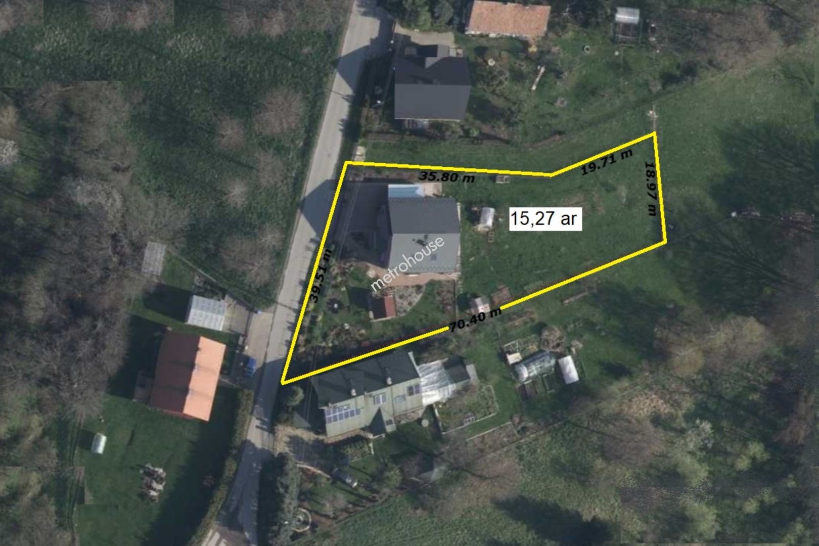 Działka ogrodzona, z zadbaną bramą wjazdową, o powierzchni 15,27 ara z dostępem do drogi publicznej.