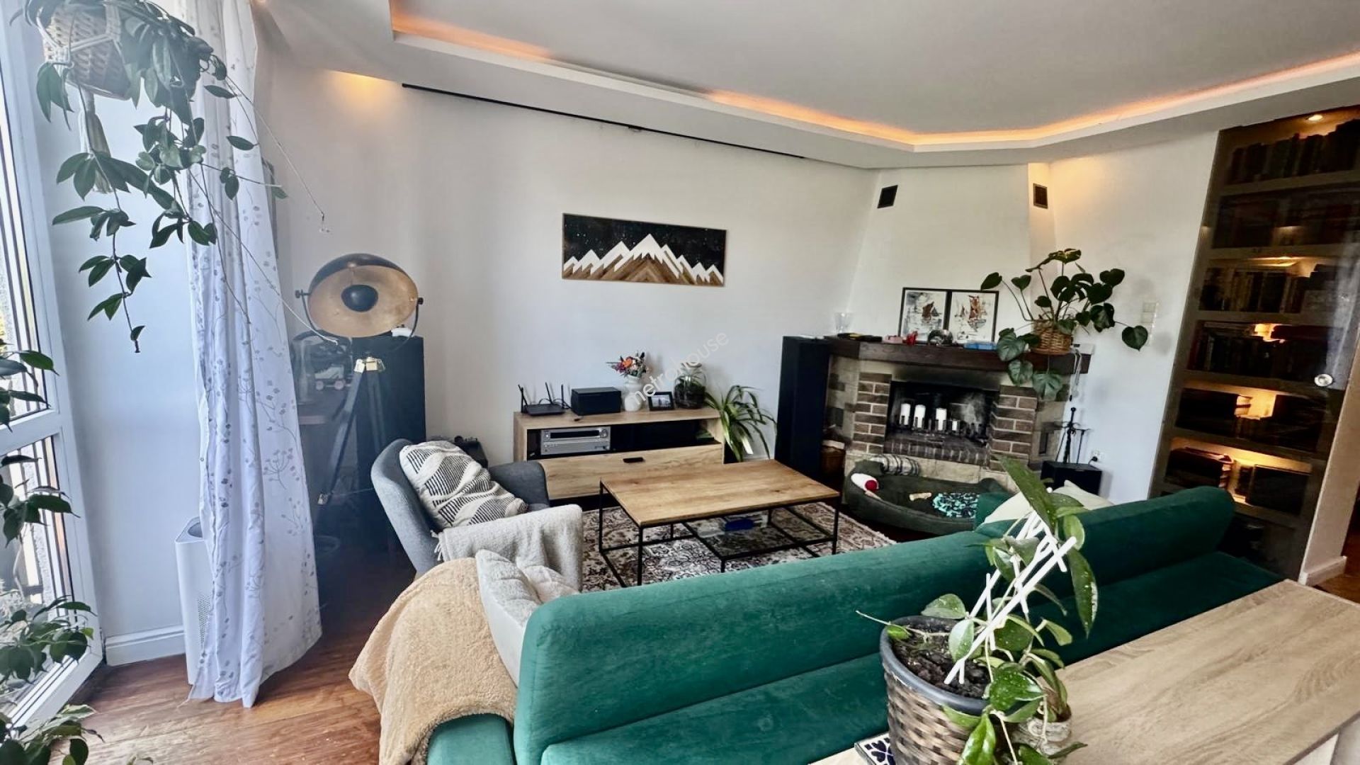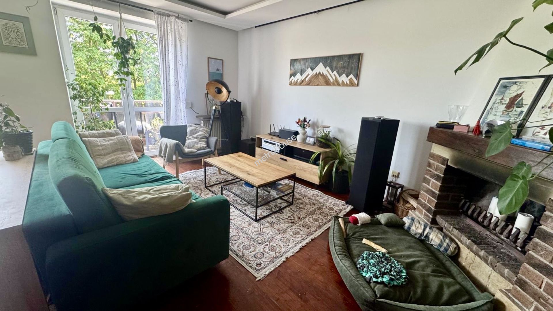 przestronny salon (ok. 30 m²) z kominkiem, wyjściem...