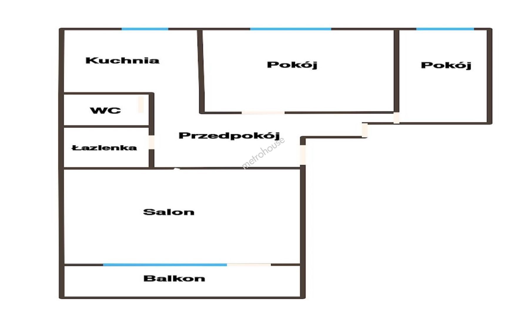 3 pokoje (salon + 2 sypialnie),oddzielna, jasna...