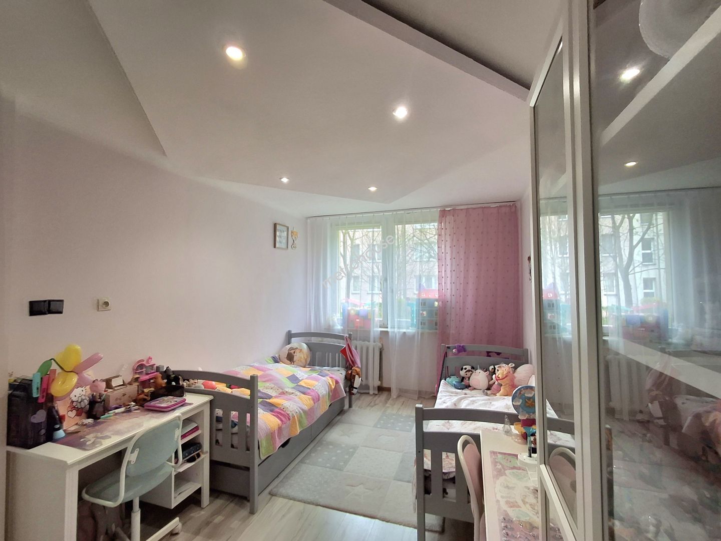 na parterze z widokiem na zadbane osiedle z dużą ilością zieleni. Właściciele zaaranżowali mieszkanie w taki sposób, że