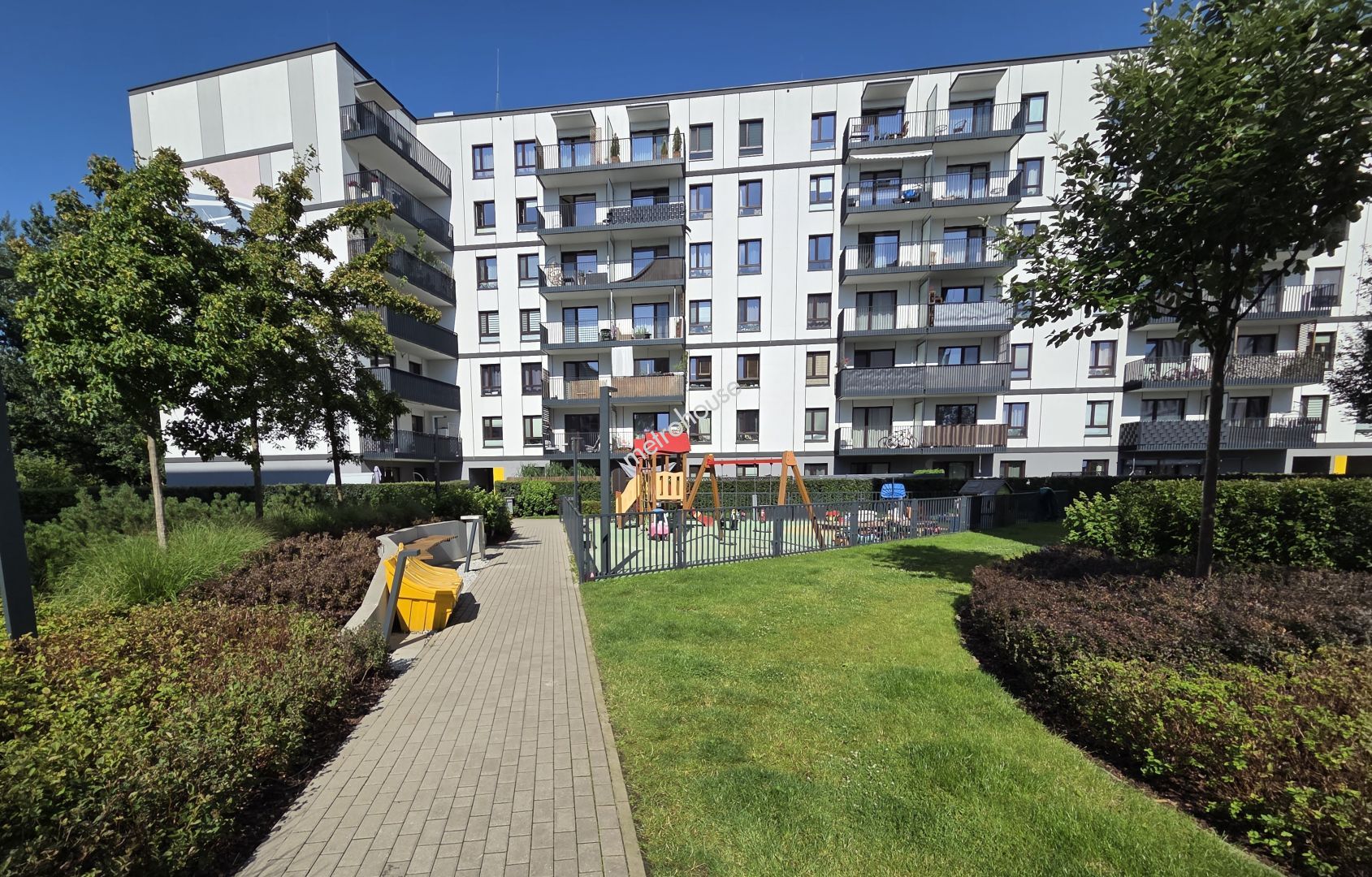 Z okien roztacza się widok na wewnętrzne patio z placem zabaw. Mieszkanie jest w bardzo dobrym stanie...