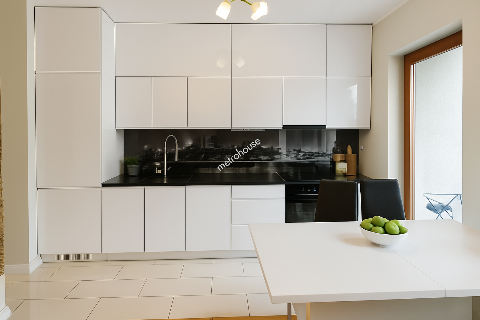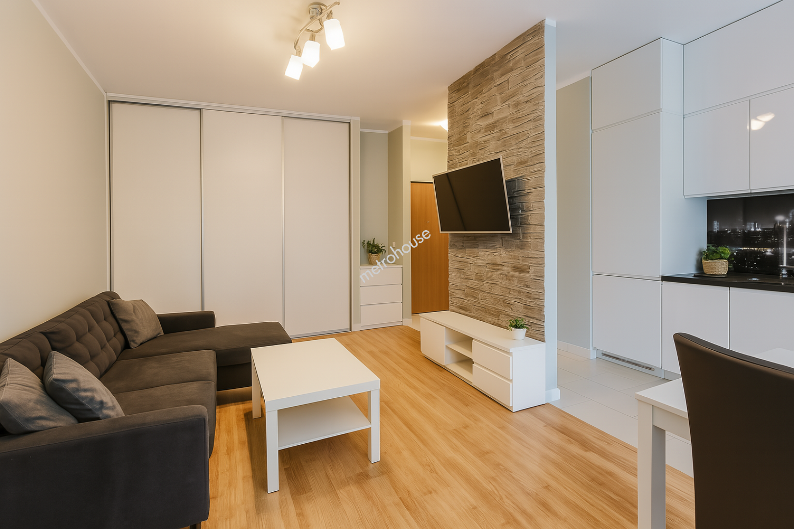 - salon z aneksem kuchennym i wyjściem do prywatnego ogródka,