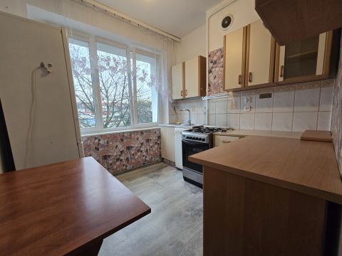 Dwupokojowe mieszkanie o funkcjonalnym rozkładzie pomieszczeń z oddzielną kuchnią, położone na pierwszym piętrze.