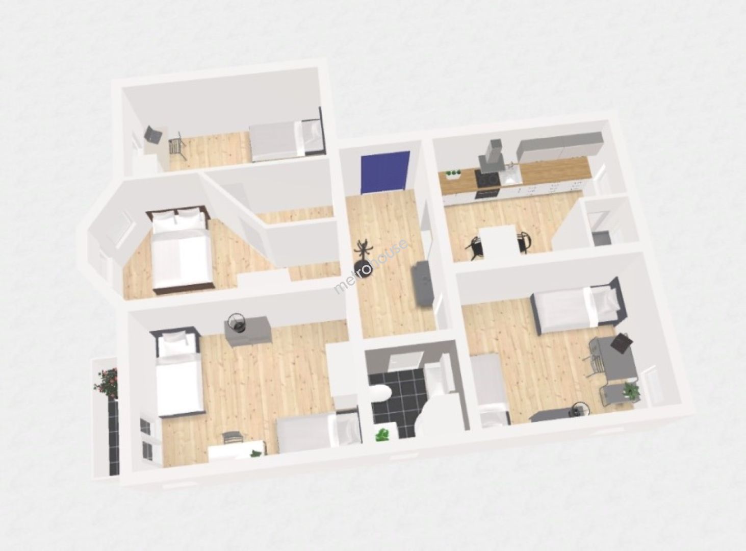 - 4 rozkładowe pokoje na łącznej powierzchni 105 m2