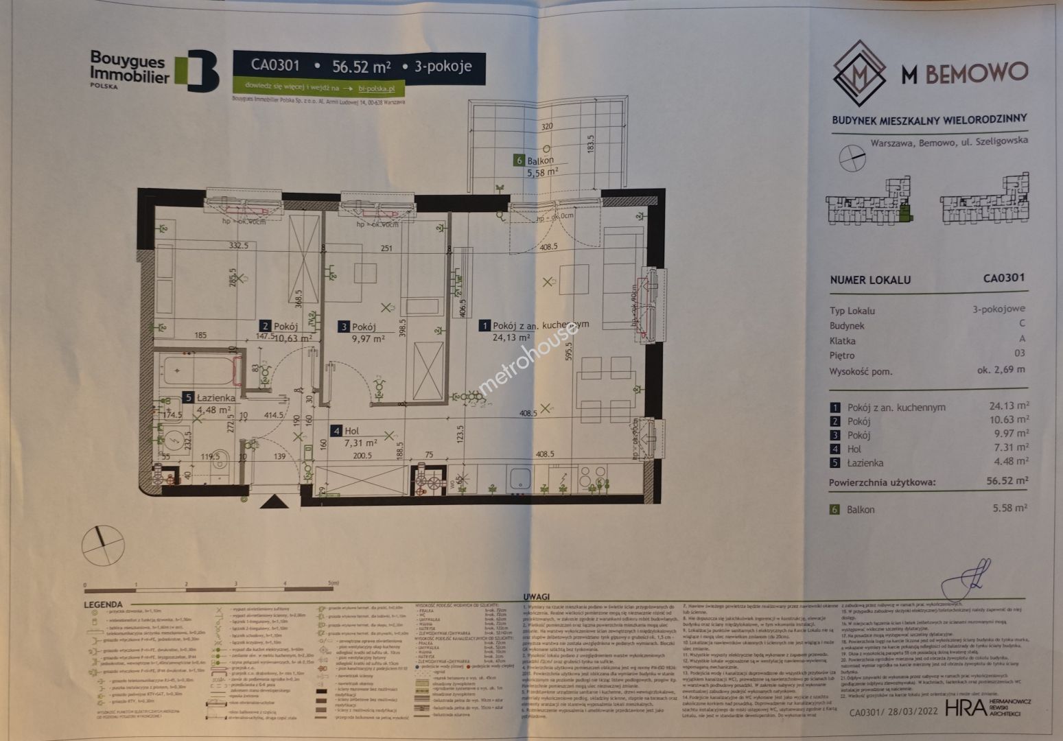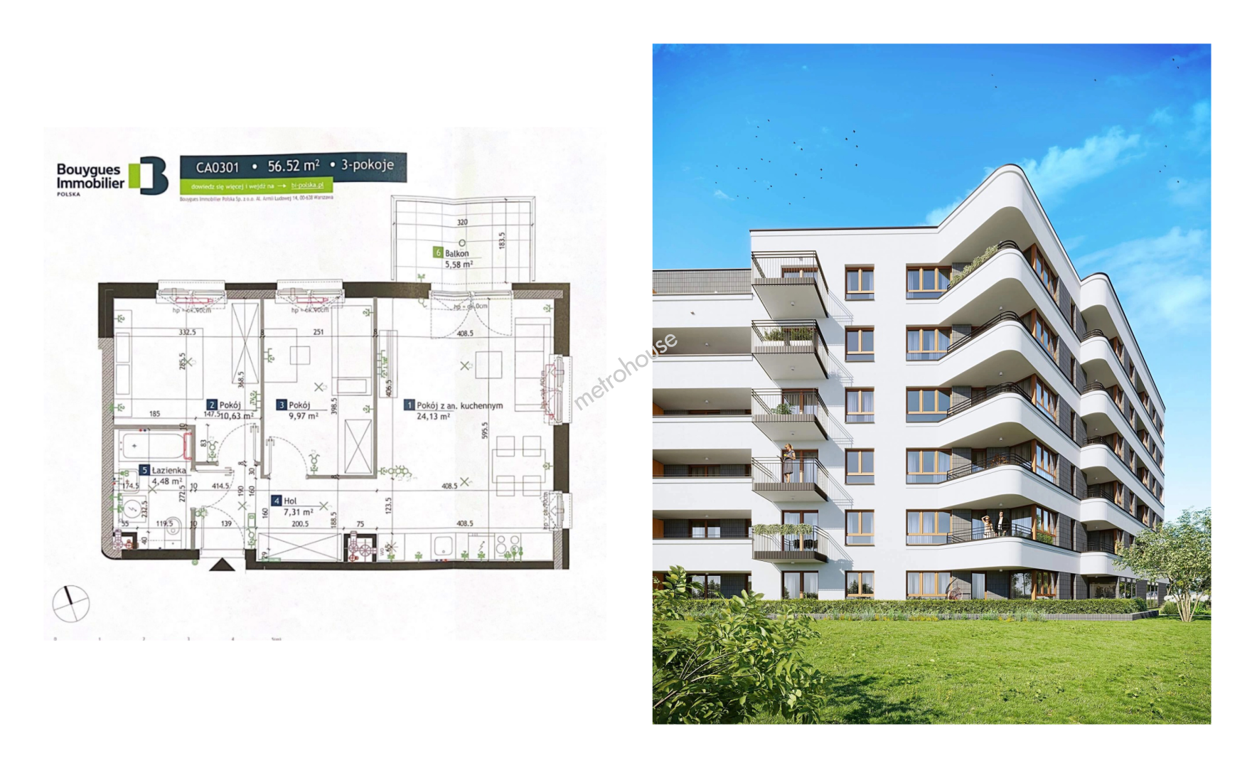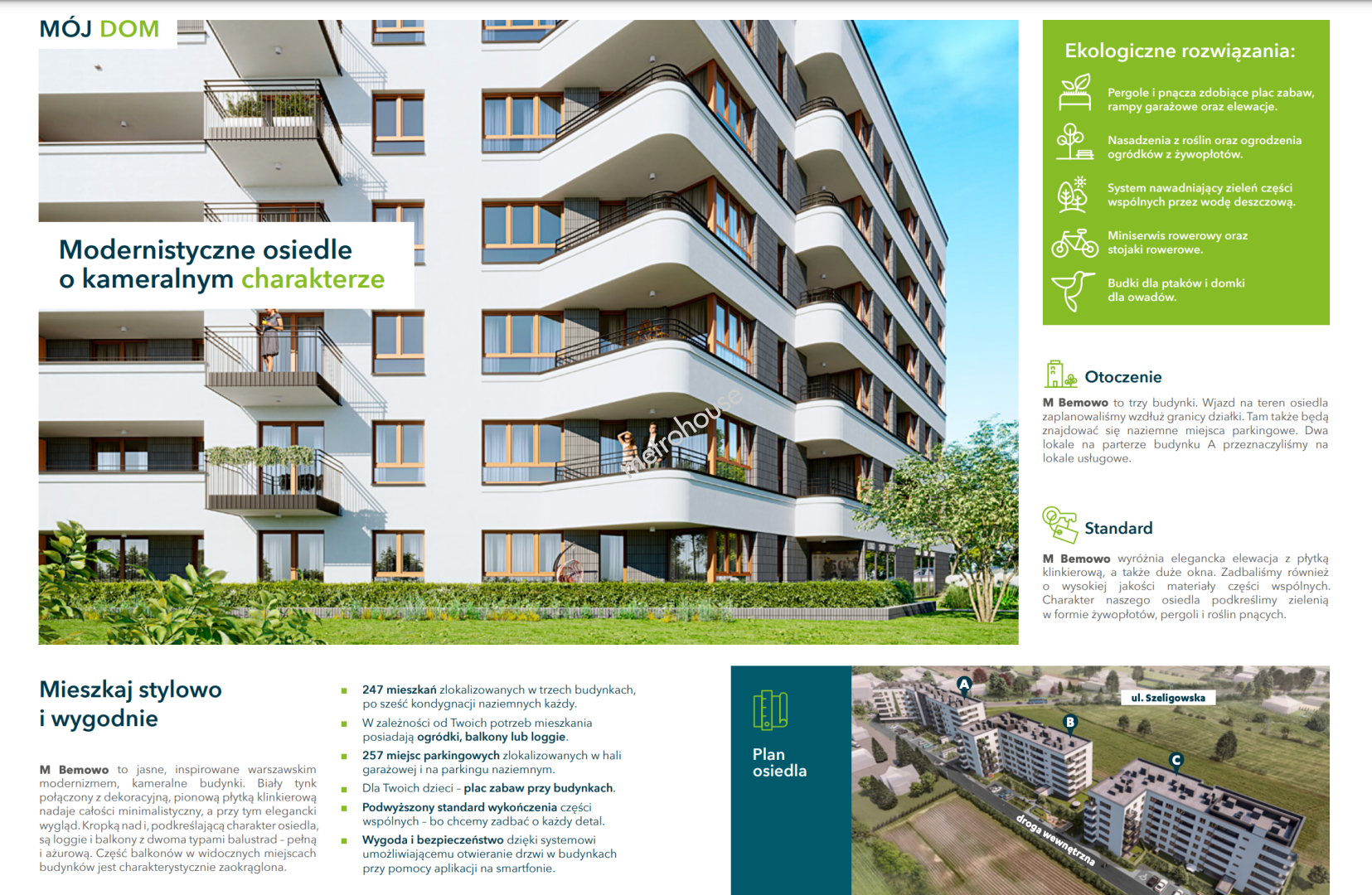 M BEMOWOto osiedle składające się z trzech kameralnych budynków inspirowanych warszawskim modernizmem. Oferowane mieszkanie o powierzchni 56,52m² i znajduję się na III piętrze w budynku C i składa się z: