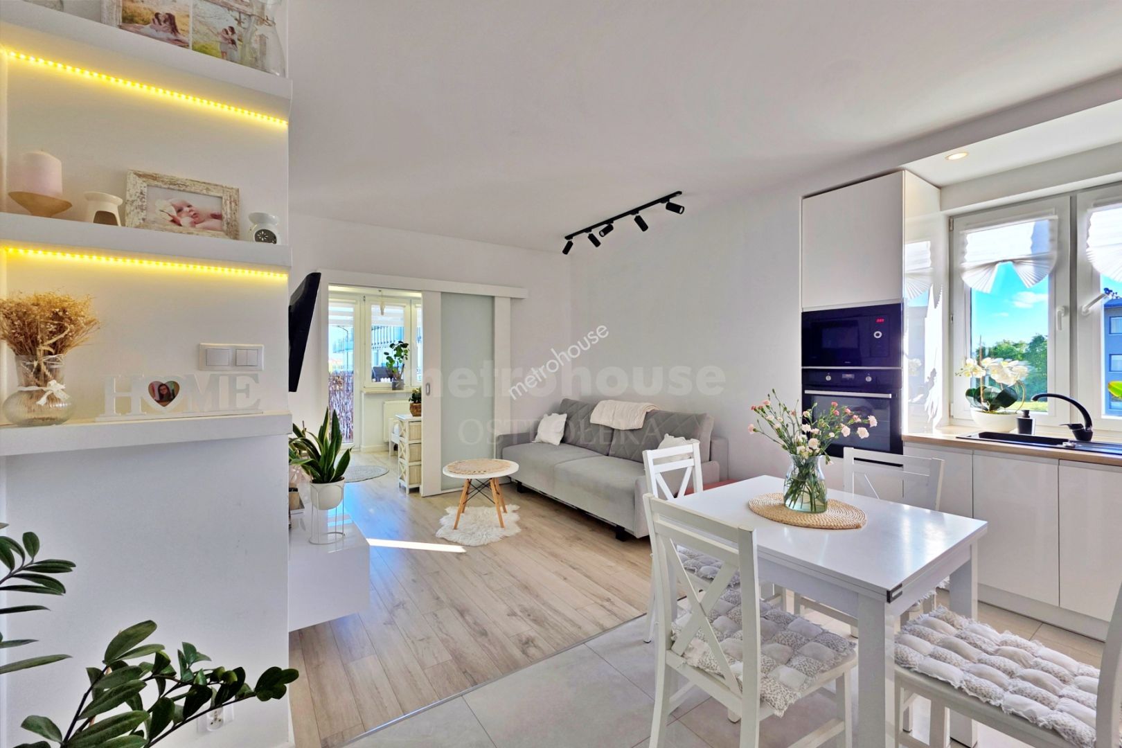 Salon z aneksem kuchennym stanowi serce mieszkania. To jasne i przestronne pomieszczenie, idealne do spotkań...
